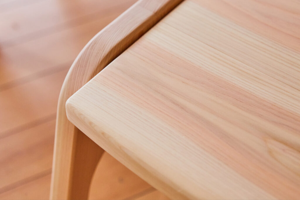 薄いピンクがかったヒノキの椅子が、経年と愛着を持った使い方によって、色味が変化し小傷もついてゆくでしょう。
