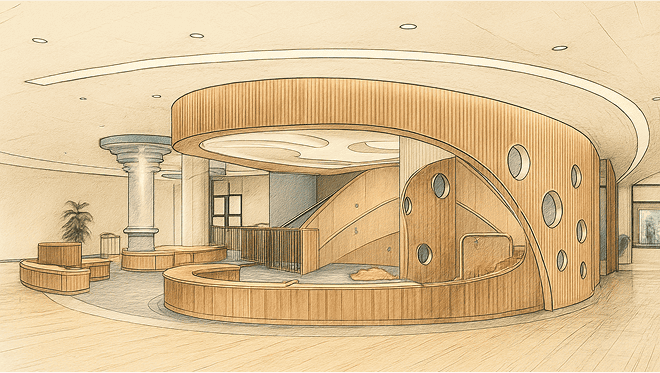新しくオープンした江東区子ども支援センター「有明みずべ」の遊具や一部什器の設計、施工を担当させて頂きました。空間中央のツリーサークル、滑り台、、壁面遊具、ひのきボールプール、ロッカー、靴箱などを設計、施工しました。