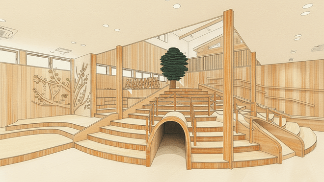 保育園に通うすべての年齢の子供たちに、チャレンジしてもらえるような遊具を作りました。