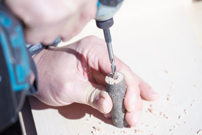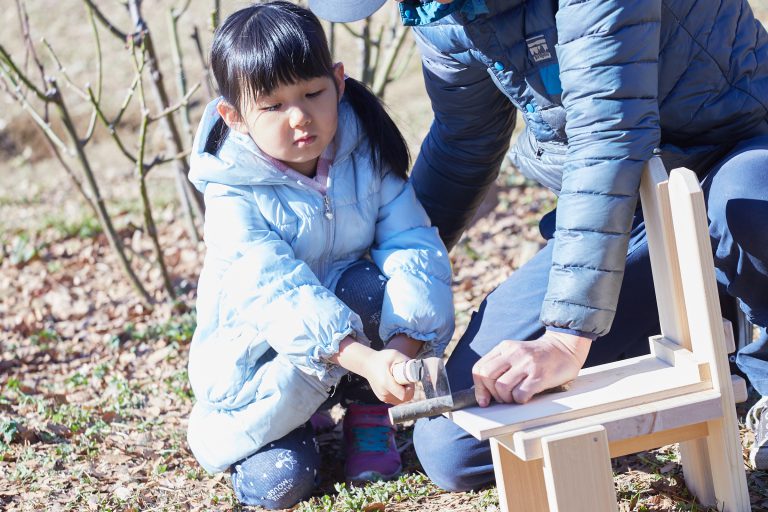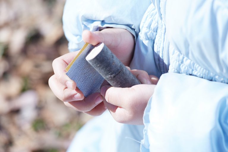 作り方はとても簡単で、木に穴をあけ、ボルトをねじ込むだけです。ボルトを回すと、金属と木がこすれあって「キュッキュ」という音が出ます。この音が、小鳥のさえずりにとてもよく似ています。