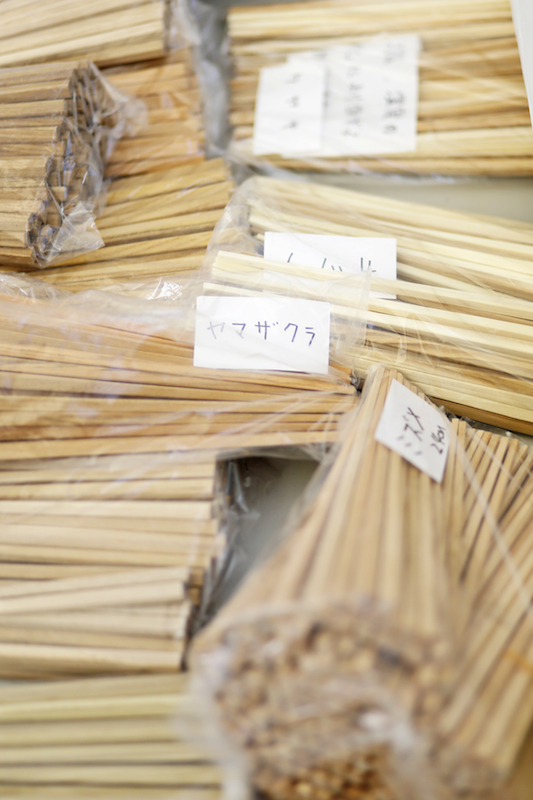 作りたい箸をイメージすることで「削る」という単純な作業に意味が出てきます。 私たちは20種類近い材種を準備しています。
