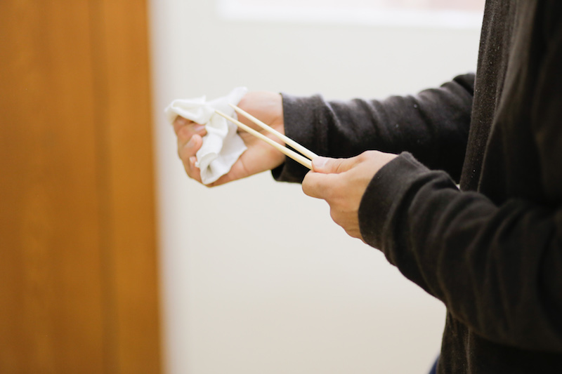木にオイルをしみこませることで木の隙間を埋め、耐水性や強度が上がります。箸は口に入るものなので、食用オイルで塗装するとよいでしょう。 オイル塗装のやり方は水引きと同じで、布にオイルを付け、木目に沿ってオイルをまんべんなく塗ります。10分ほどしたら、綺麗な布で、塗ったオイルをしっかり拭き取って、これで箸の完成です。